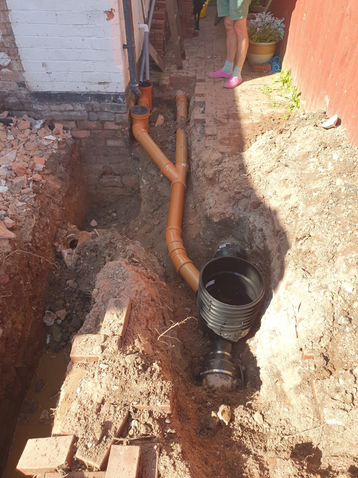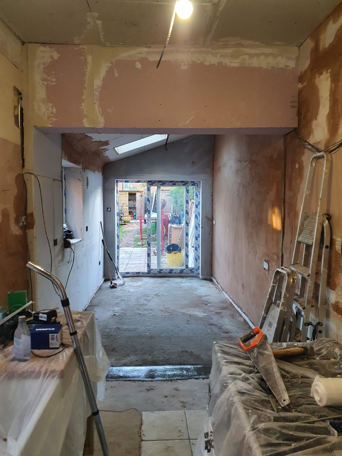 "Ricky build a kitchen extension for us including a kitchen wall knock through through and demolition of the existing outhouse. He was consistently good humoured, steadily working through the different stages with a practiced confidence. Ricky and Colin worked well with the building regs officials to make sure all work was passed first time. He was able to calmly deal with any unexpected snags and his work was always ordered, clean and tidy. Skills used were careful demolition and to clearing to skips, machine extraction of footings whilst protecting utilities, organising a concrete pour with a 60M pump, building up to damp, screed, organising other trades (windows, roofer, chippy, taking out supporting wall and inserting steel beam, boarding up, bonding. Costing was always very clear and I would recommend Ricky as a diligent competent and careful builder".